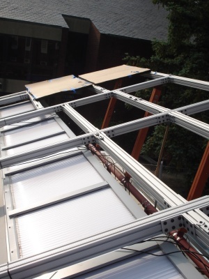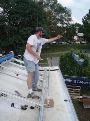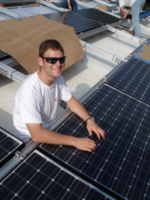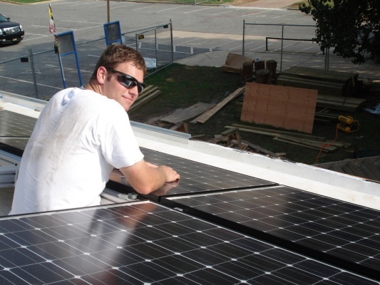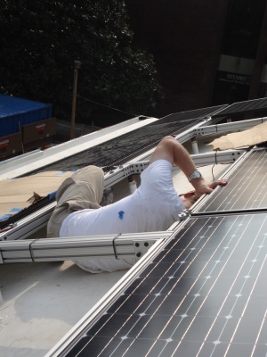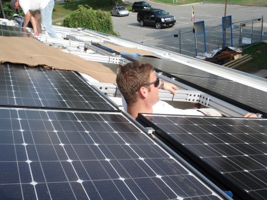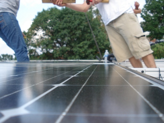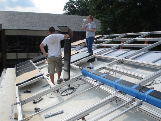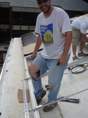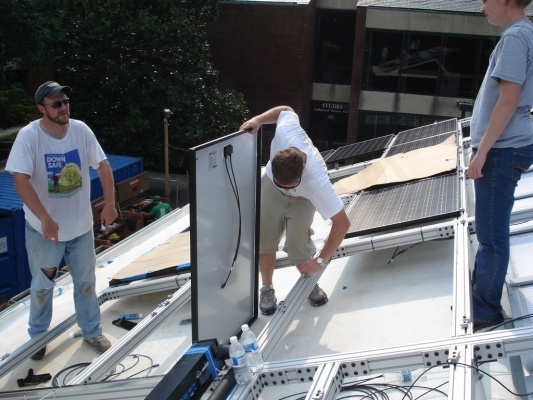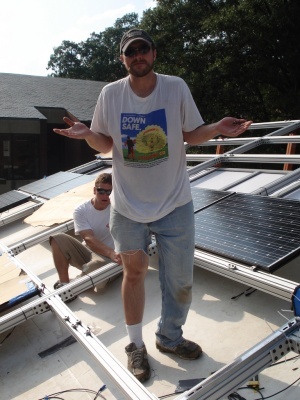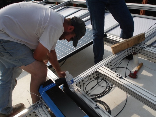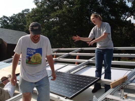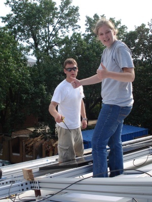 Team members put up the Solar Panels so the house can finally get power!
