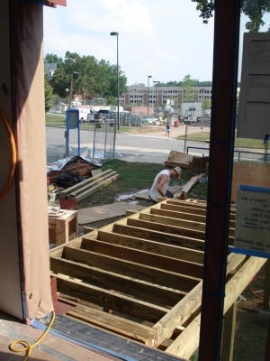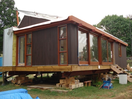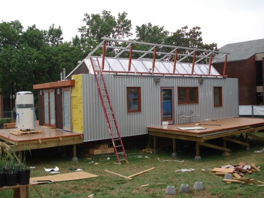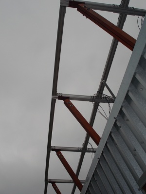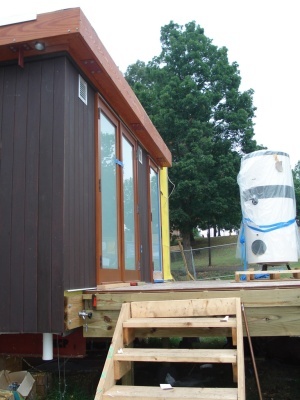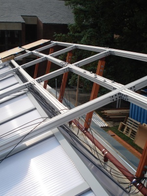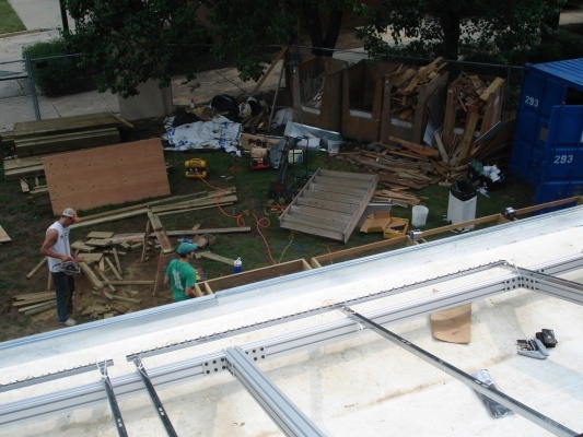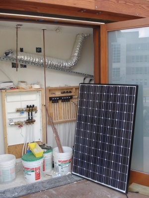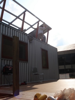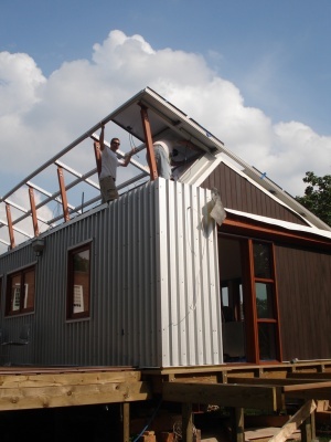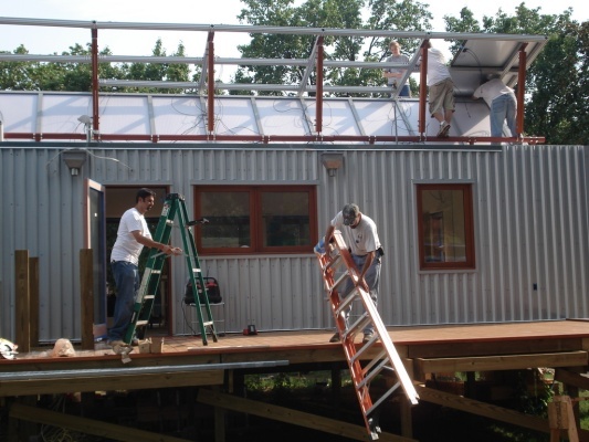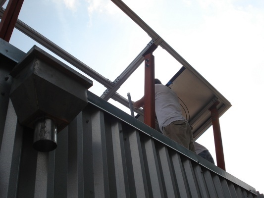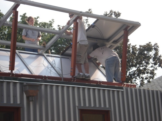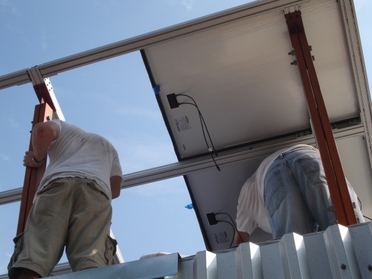 Solar panels are starting to go up. It took us a couple to tries to get it oriented just right.