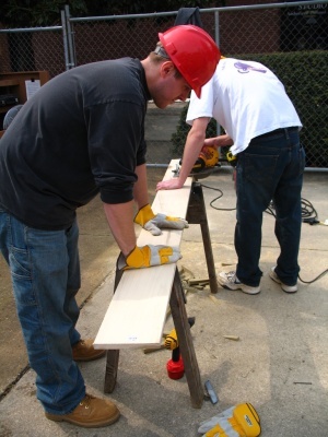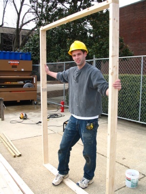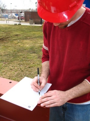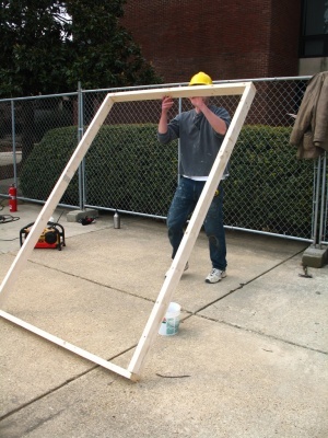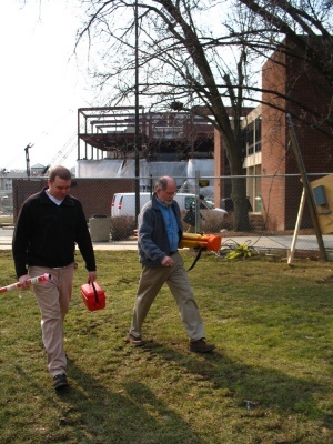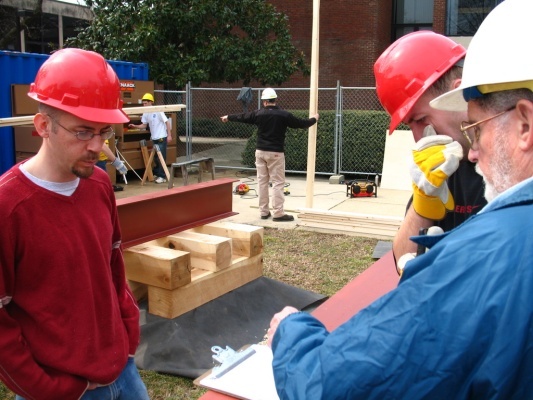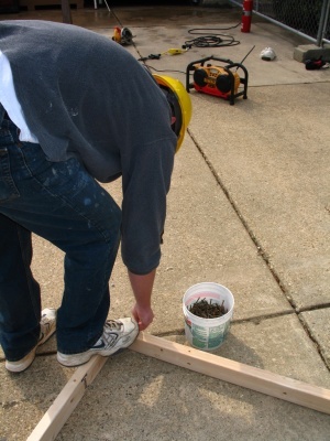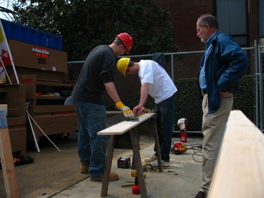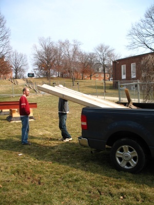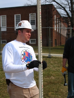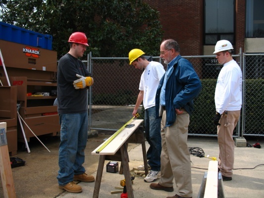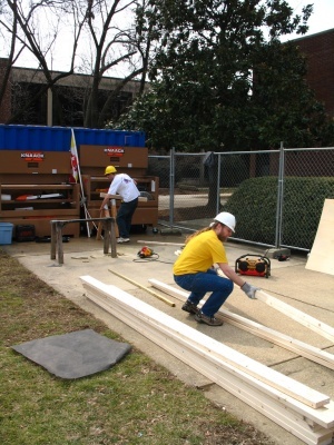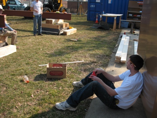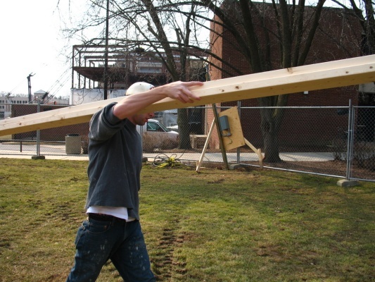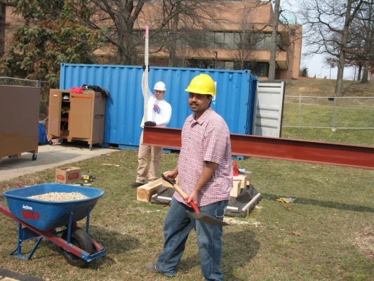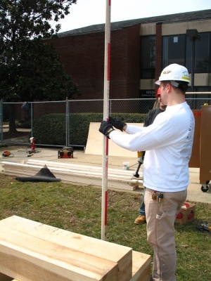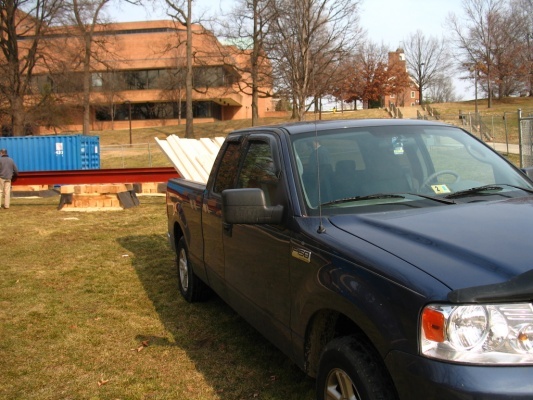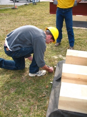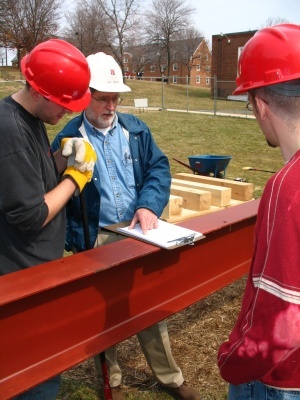 Steel finally arrived on the site. So did a nice toy from United Rentals. So, the LEAFHouse team worked Friday and Saturday to place and level the steel beams on the cribbing.