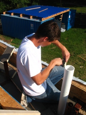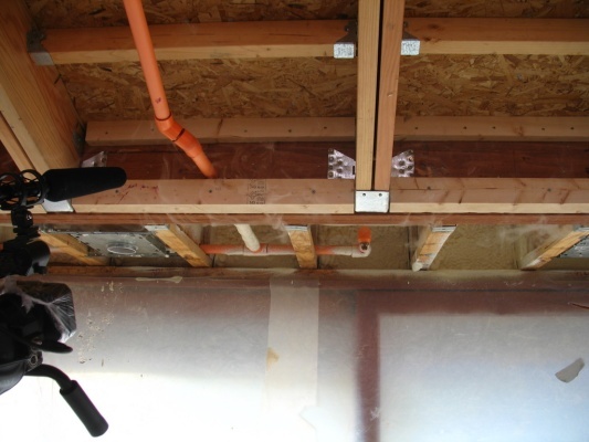 In addition to the wiring which carries the life-blood of the LEAFHouse (electricity), behind the sheathing and inside the foam, the walls are laced with sensors that form the house's nervous system. This sensor network is connected to the brain of the LEAFHouse, an adaptive control system for monitoring and regulating the home's operation.