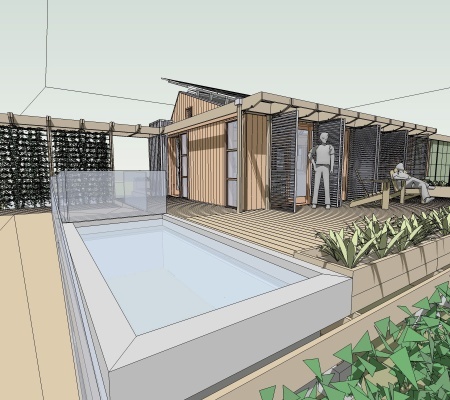 Skip navigation to main content.LEAFHouse is a holistic design. As with our model, the leaf, our house incorporates elements of water conservation, energy production, air transpiration, and simplicity and delight in form. But a leaf does not exist in isolation. It is part of an interdependent system. Likewise, our house must become a part of a system with the site on which it sits. A number of elements accomplish this, including decks, plantings, pergolas, and gardens. In its permanent home, we will further explore the integration of our prototype into the Chesapeake Bay watershed and climate. The final goal is an architecture that leads everyone to an abundant future through sustainable design.